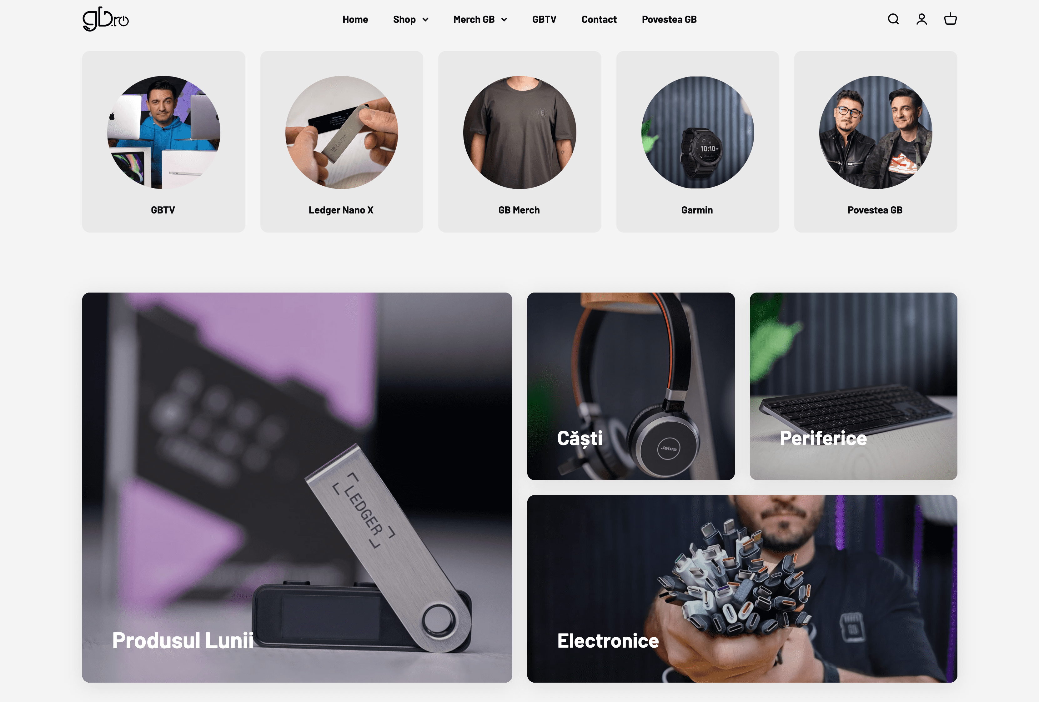 GB.ro, vechiul magazin online, era construit pe platforma WooCommerce, care implica un nivel mare de mentenanță pentru o bună funcționare, iar pe lângă asta gestionarea magazinului era una dificilă. Pentru a îmbunătăți toată experiența magazinului online și pentru a utiliza cea mai avansată și performantă tehnologie în e-commerce, am decis să migrăm magazinul online pe Shopify. Înainte de a lua această decizie, am făcut un research detaliat și am ajuns la concluzia că Shopify este cea mai bună soluție pentru crearea și gestionarea magazinelor online în clipa de față.